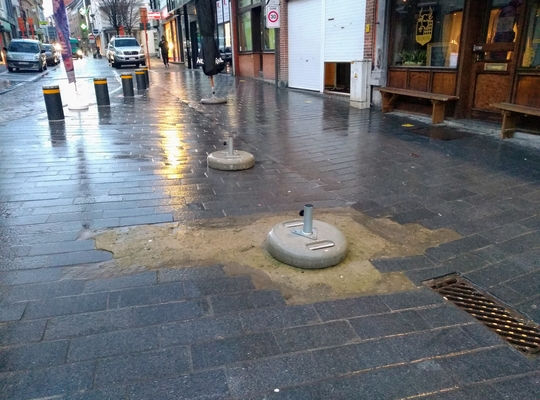 Zowat een jaar geleden werd de vernieuwde Beestenmarkt feestelijk ingehuldigd. Maar amper een paar dagen na de feestelijke opening bleek dat een woning niet was aangesloten op de riolering. De pas aangelegde Beestenmarkt moest opnieuw opengegooid worden. Na de aansluiting werd de werfput voorlopig gedicht. Intussen zijn we een jaar later en het litteken van de werfput ontsiert nog steeds het plein.